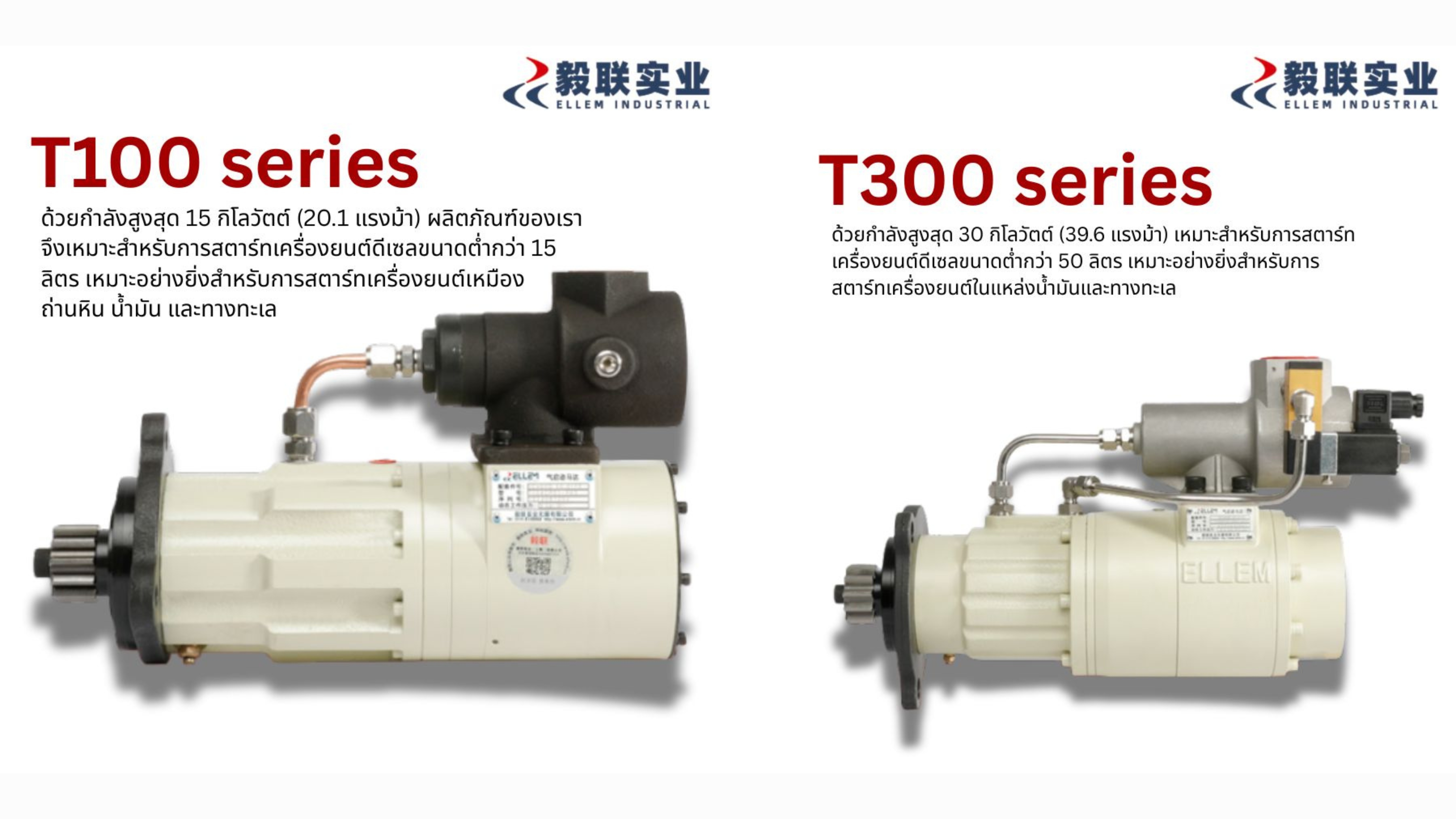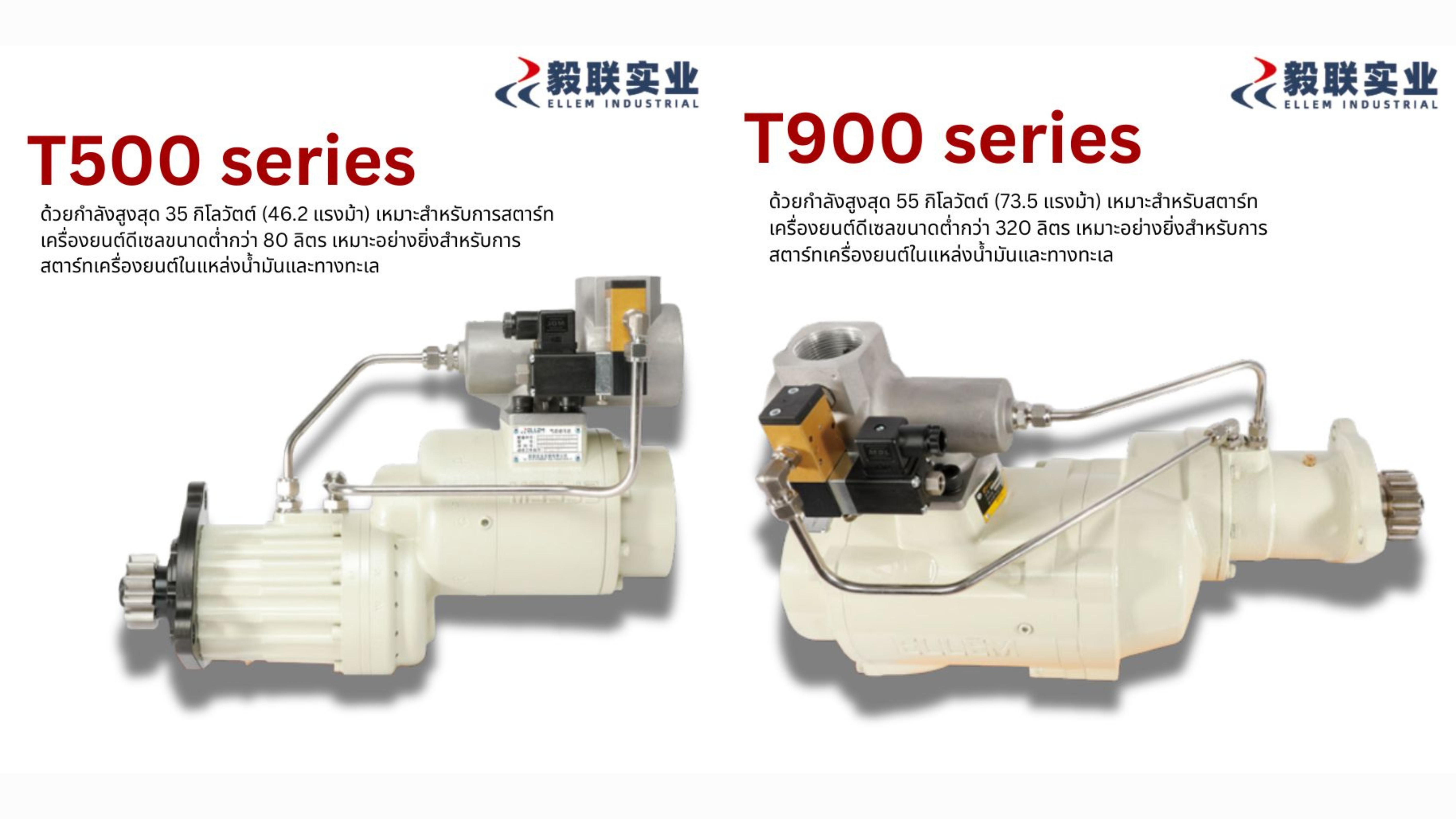 T-series Air Starter Motor ได้รับการออกแบบมาเพื่อให้มีประสิทธิภาพที่เหนือชั้นในงานอุตสาหกรรมยานยนต์ งานทางทะเล และแหล่งน้ำมัน อีกทั้งยังผ่านการรับรองและได้รับการอนุมัติจาก MAN® Energy Solutions ในด้านการออกแบบ กระบวนการผลิต และการจัดหา Air Starter Motor